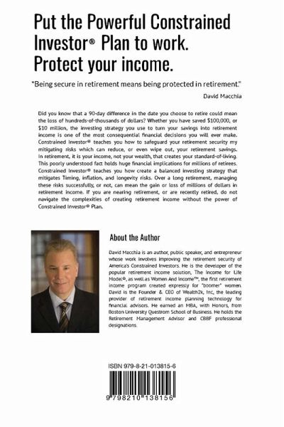 Did you know that a 90-day difference in the date you choose to retire could mean the loss of hundreds-of-thousands of dollars? Whether you have saved $100,000, or $10 million, the investing strategy you use to turn your savings into retirement income is one of the most consequential financial decisions you will ever make. Constrained Investor® teaches you how to safeguard your retirement security my mitigating risks which can reduce, or even wipe out, your retirement savings. In retirement, it is your income, not your wealth, that creates your standard-of-living. This poorly understood fact holds huge financial implications for millions of retirees. Constrained Investor® teaches you how create a balanced investing strategy that mitigates Timing, inflation, and longevity risks. Over a long retirement, managing these risks successfully, or not, can mean the gain or loss of millions of dollars in retirement income. If you are nearing retirement, or are recently retired, do not navigate the complexities of creating retirement income without the power of Constrained Investor®.