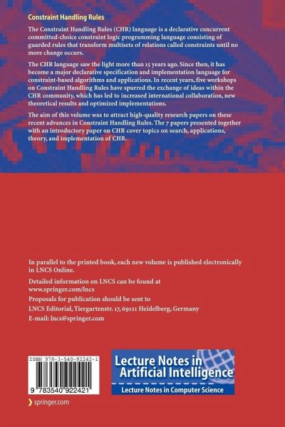 The ConstraintHandling Rules (CHR) languagecameto life morethan 15 years ago.Sincethen,ithasbecomeamajordeclarativespeci?cationandimplemen- tion language for constraint-based algorithms and applications. In recent years, the ?ve Workshops on Constraint Handling Rules have spurred the exchange of ideas within the CHR community, which has led to increased international collaboration, new theoretical results and optimized implementations. The aim of this volume of Lecture Notes in Ariti?cial Intelligence was to attract high-quality research papers on these recent advances in CHR. The 8 papersinthis issuewereselectedfrom11submissionsaftercarefulreviewingand subsequent revisions. Each paper was reviewd by three reviewers. The accepted papers represent some of the research teams on CHR around the world. It is not by accident that the currently most active research group is featured here with three articles. We also would have liked to see contributions from other CHR teams, but space is limited and the reviewers took their job seriously. After an introductory article that foreshadows an upcoming monograph on CHR, the accepted papers span a range of current research topics in the CHR community. It goes from extending the CHR language with search facilities and the related adaptive framework, and from generating rules from speci?cations of constraint solvers to implementing abductive probabilistic reasoning. They cover the theory that is a compositional semantics for CHR and ?nally describe e?cient implementations of CHR in traditional mainstream programming l- guages and compiler optimizations in the context of the re?ned semantics of CHR. Wewouldliketothanktheauthorsofsubmittedpapersandthemanyrevi- ers for their contribution in making this collection of researchpapers possible.