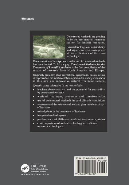 Landfill Leachate Characteristics as Inputs for the Design of Wetlands Used as Treatment Systems-Constructed Wetlands for Treating Landfill Leachate-Wetlands for Treatment of Landfill Leachates in Cold Climates-Trond Moehlum Substrate type, flow characteristics, and detention times related to landfill leachate treatment efficiency in constructed wetlands-Performance of a Constructed Wetland Leachate Treatment System at the Chunchula Landfill, Mobile County, The Use of an Engineered Reed Bed System to Treat Leachate at Monument Hill Landfill Site, Southern England-Leachate Wetland Treatment System at the Orange County Landfill, Florida-Attenuation of Landfill Leachate by a Natural Marsh System-, Leachate Treatment in Extended Aeration Lagoons and Constructed Wetlands in Norway-Treatment of a Leachate from a Landfill Receiving Industrial Commercial, Institutional and Construction/Demolition Wastes in an Engineered Wetland-Evaluation of a Constructed Wetland for Treatment of Leachate at a Municipal Landfill in Northwest Florida-An Integrated Natural System for Leachate Treatment-A Constructed Wetland System for Treatment of Landfill Leachate, Monroe County, New York-Seasonal Growth Patterns in Wetland Plants Growing in Landfill Leachate-The Use of a Constructed Wetland to Treat Landfarm Leachate at the Sunoco Refinery in Sarnia, Ontario-JIron Accumulation in Leachate Treatment Wetlands and Toxicity to Benthic Invertebrates: A Review-A Cost Comparison of Leachate Treatment Alternatives-Summary of Panel Discussion