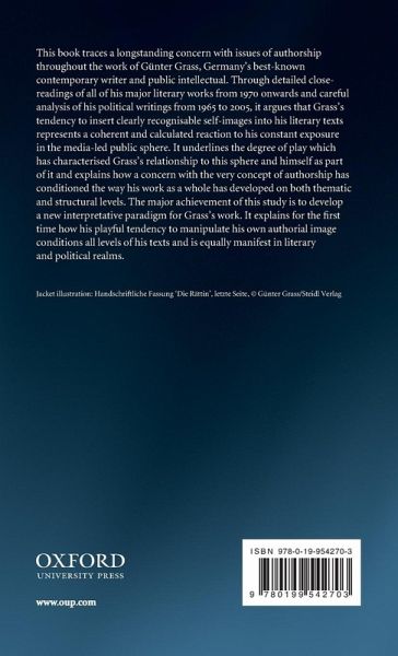 This book traces a longstanding concern with issues of authorship throughout the work of Gunter Grass, Germany's best-known contemporary writer and public intellectual. Through detailed close-readings of all of his major literary works from 1970 onwards and careful analysis of his political writings from 1965 to 2005, it argues that Grass's tendency to insert clearly recognisable self-images into his literary texts represents a coherent and calculated reaction to his constant exposure in the media-led public sphere. It underlines the degree of play which has characterised Grass's relationship to this sphere and himself as part of it and explains how a concern with the very concept of authorship has conditioned the way his work as a whole has developed on both thematic and structural levels.