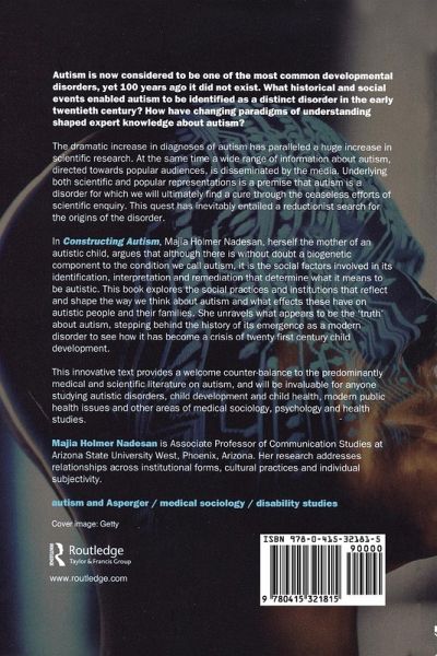 Autism is now considered to be one of the most common developmental disorders today, yet 100 years ago the term did not exist. This book examines the historical and social events that enabled autism to be identified as a distinct disorder in the early twentieth century. The author, herself the mother of an autistic child, argues that although there is without doubt a biogenetic component to the condition, it is the social factors involved in its identification, interpretation and remediation that determine what it means to be autistic. Constructing Autism explores the social practices and institutions that reflect and shape the way we think about autism and what effects this has on autistic people and their families. Unravelling what appears to be the 'truth' about autism, this informative book steps behind the history of its emergence as a modern disorder to see how it has become a crisis of twenty-first century child development.