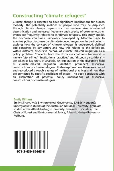 Climate change is expected to have significant implications for human mobility. The potentially millions of people who may be displaced through climate change impacts such as sea-level rise, accelerated desertification and increased frequency and severity of extreme weather events are frequently referred to as 'climate refugees'. This study applies the discourse coalitions framework developed by Maarten Hajer to examine policy discourse on climate-induced migration. In particular, it explores how the concept of 'climate refugees' is understood, defined and contested by key actors and how this relates to the definition, within different discursive arenas, of climate-induced migration as a policy problem. Concepts from the discourse coalitions framework namely story-lines , institutional practices and discourse coalitions are taken as key units of analysis. An exploration of the discursive field of climate-induced migration identifies prominent discursive constructions of climate refugees. It also explores how these are created and reproduced through a range of institutional practices and how they are contested by specific coalitions of actors. The book concludes with an exploration of potential policy implications of discursive constructions of climate refugees.