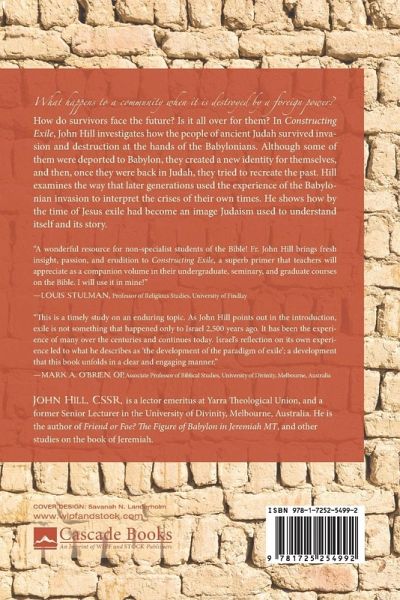 What happens to a community when it is destroyed by a foreign power? How do survivors face the future? Is it all over for them? In Constructing Exile, John Hill investigates how the people of ancient Judah survived invasion and destruction at the hands of the Babylonians. Although some of them were deported to Babylon, they created a new identity for themselves, and then, once they were back in Judah, they tried to recreate the past. Hill examines the way that later generations used the experience of the Babylonian invasion to interpret the crises of their own times. He shows how by the time of Jesus exile had become an image Judaism used to understand itself and its story.