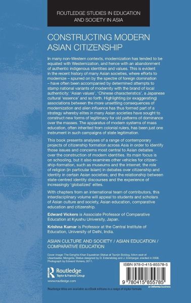 This book presents analyses of a range of contemporary projects of citizenship formation across Asia in order to identify those issues and concerns most central to Asian debates over the construction of modern identities. The book main focus is on schooling, but also features other vehicles for citizenship-formation, such as museums and the internet; the role of religion (in particular Islam) in debates over citizenship and identity in certain Asian societies; and the relationship between state-centred identity discourses and the experience of increasingly 'globalized' elites.