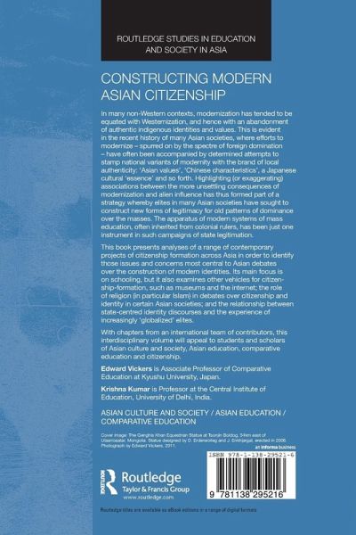 This book presents analyses of a range of contemporary projects of citizenship formation across Asia in order to identify those issues and concerns most central to Asian debates over the construction of modern identities. The book main focus is on schooling, but also features other vehicles for citizenship-formation, such as museums and the internet; the role of religion (in particular Islam) in debates over citizenship and identity in certain Asian societies; and the relationship between state-centred identity discourses and the experience of increasingly 'globalized' elites.