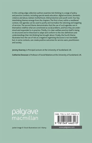 This collection explores how the dominant risk agenda is being embedded across welfare policy and practice contexts in order to redefine social problems and those who experience them. Identities of 'risky' or 'safe', 'responsible' or 'irresponsible' are being increasingly applied, not only to everyday life but also to professional practice.