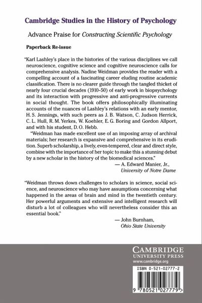 Constructing Scientific Psychology is the first full-scale interpretation of the life and work of the major American neuropsychologist Karl Lashley. It sets Lashley's research at the heart of two controversies that polarized the American life and human sciences in the first half of the twentieth century. These concerned the relationship between 'mind' and 'brain' and the relative roles of 'nature' and 'nurture' in shaping behaviour and intelligence. The book explodes the myth of Lashley's neuropsychology as a fact-driven, 'pure' science by arguing that a belief in the power of heredity and a nativist and deeply conservative racial ideology informed every aspect of his theory and practice.