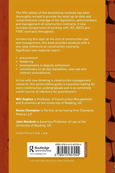 The fifth edition of this bestselling textbook has been thoroughly revised to provide the most up-to-date and comprehensive coverage of the legislation, administration and management of construction contracts. Includes the latest formats of JCT and FIDIC, as well as coverage of the NEC.