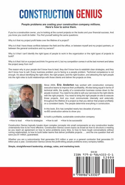 Eric Anderton is different from other consultants. Because most consultants understand business, but not the business of construction. Eric knows what makes a construction business tick. And unlike other authors, commenters, and podcasters, he understands the unique nuances of the construction industry. That's how he has helped countless construction industry leaders by logically breaking down complex leadership concepts into small components so they understand how to be more effective. And he has shared that information for years on his popular podcast Construction Genius. In his new book of the same name, Construction Genius, Eric goes beyond the microphone to reveal the deepest truths he has learned about making a construction business work. Eric's high energy, vast experience, and simple explanations make building a construction business so simple that anyone can do it. Eric Anderton has more than two decades of career and entrepreneurial business experience, alongside twenty-five years of public speaking, small group facilitation, and one-on-one mentoring. He is a trusted leadership advisor, executive mentor, and expert meeting facilitator for construction companies that range in revenue from $10 million to $1 billion. Since 2004 he has helped his clients increase profitability by clarifying their business purpose, building strategic plans, developing their best people, systematically innovating through obstacles, and executing their most important priorities.Learn more about Eric Anderton at www.ConstructionGenius.com.