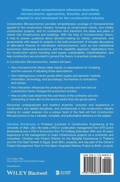 Unique and comprehensive reference describing microeconomic approaches, theories, and models adapted to and developed for the construction industry
