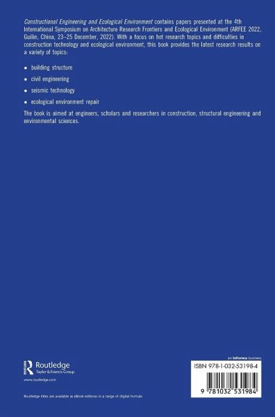 This book provides the latest research results on a variety of topics (building structures, structural engineering, seismic technology, ecological environment repair), and is aimed at engineers, scholars and researchers in construction, structural engineering and environmental and ecological sciences.