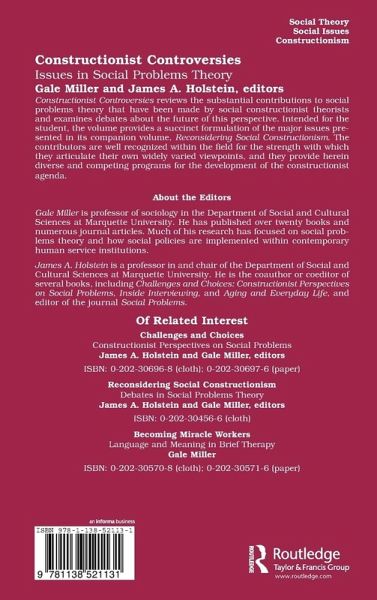 Introduction 1: Constructing Social Problems: Context and Legacy 1: Contemporary Issues in Social Constructionism 2: Vernacular Constituents of Moral Discourse: An Interactionist Proposal for the Study of Social Problems 3: For a Cautious Naturalism 4: The Reflectivity of Constructionism and the Construction of Reflexivity 5: Do We Need a General Theory of Social Problems? 6: But Seriously Folks: The Limitations of the Strict Constructionist Interpretation of Social Problems 2: New Directions for Social Constructionism 7: Social Constructionism and Social Problems Work 8: Claims-Making from the Underside: Marginalization and Social Problems Analysis 9: Social Constructionism in Critical Feminist Theory and Research 10: Cultural Theory, Social Construction, and Social Problems 11: Constructing Conditions, People, Morality, and Emotion: Expanding the Agenda of Constructionism