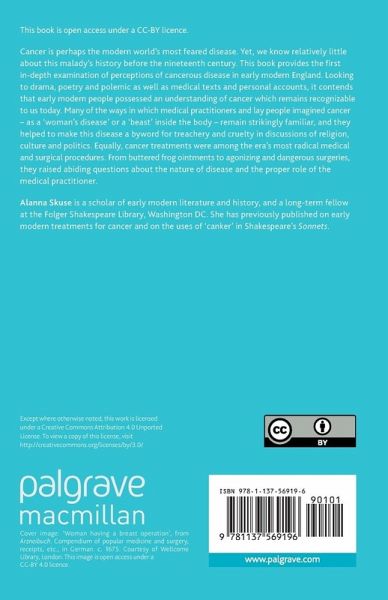 Cancer is perhaps the modern world's most feared disease. Yet, we know relatively little about this malady's history before the nineteenth century. This book provides the first in-depth examination of perceptions of cancerous disease in early modern England. Looking to drama, poetry and polemic as well as medical texts and personal accounts, it contends that early modern people possessed an understanding of cancer which remains recognizable to us today. Many of the ways in which medical practitioners and lay people imagined cancer - as a 'woman's disease' or a 'beast' inside the body - remain strikingly familiar, and they helped to make this disease a byword for treachery and cruelty in discussions of religion, culture and politics. Equally, cancer treatments were among the era's most radical medical and surgical procedures. From buttered frog ointments to agonizing and dangerous surgeries, they raised abiding questions about the nature of disease and the proper role of the medical practitioner.