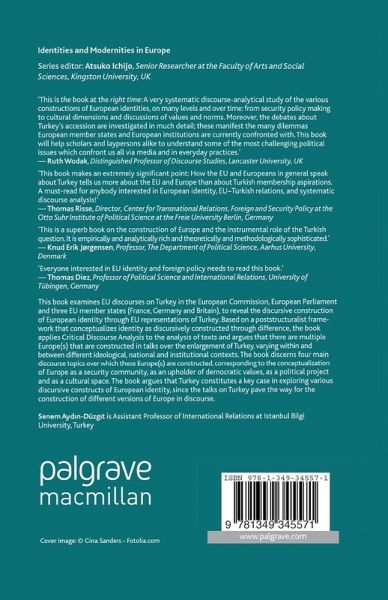 This book examines EU discourses on Turkey in the European Commission, European Parliament and three EU member states (France, Germany and Britain), to reveal the discursive construction of European identity through EU representations of Turkey. Based on a poststructuralist framework that conceptualizes identity as discursively constructed through difference, the book applies Critical Discourse Analysis to the analysis of texts and argues that there are multiple Europe(s) that are constructed in talks over the enlargement of Turkey, varying within and between different ideological, national and institutional contexts. The book discerns four main discourse topics over which these Europe(s) are constructed, corresponding to the conceptualization of Europe as a security community, as an upholder of democratic values, as a political project and as a cultural space. The book argues that Turkey constitutes a key case in exploring various discursive constructs of European identity, since the talks on Turkey pave the way for the construction of different versions of Europe in discourse.