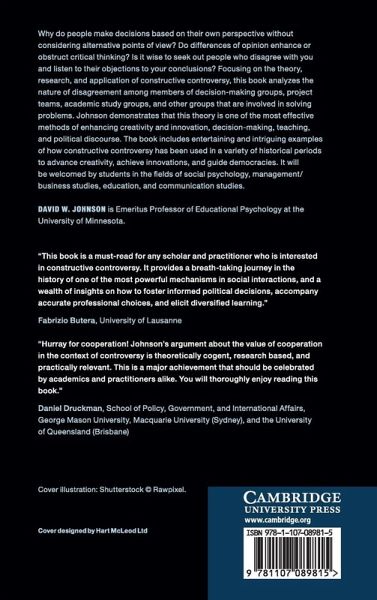 Why do people make decisions based on their own perspective without considering alternative points of view? Do differences of opinion enhance or obstruct critical thinking? Is it wise to seek out people who disagree with you and listen to their objections to your conclusions? Focusing on the theory, research, and application of constructive controversy, this book analyses the nature of disagreement among members of decision-making groups, project teams, academic study groups, and other groups that are involved in solving problems. Johnson demonstrates that this theory is one of the most effective methods of enhancing creativity and innovation, decision making, teaching, and political discourse. The book includes entertaining and intriguing examples of how constructive controversy has been used in a variety of historical periods to advance creativity, achieve innovations, and guide democracies. It will be welcomed by students in the fields of social psychology, management/business studies, education, and communication studies.