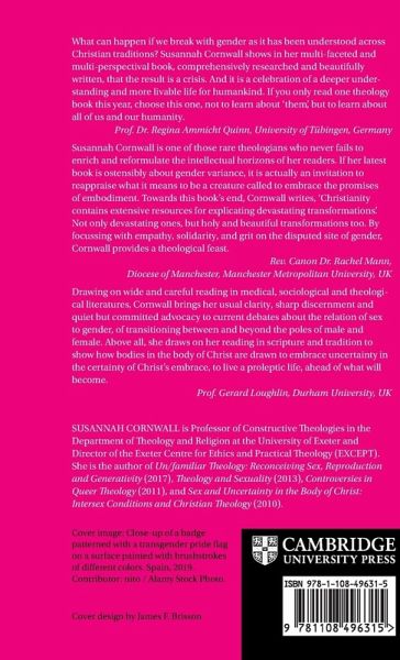 Part I. Setting the Scene: 1. Introduction: transformative creatures; 2. Detransition impermanence and the innocence of changing one's mind; 3. Existing Christian theological responses to transition: being transformed/being transformed; Part II. Telling Truths: 4. Autonomy and trans people: authenticity responsibility recognition; 5. Gender transition truth-telling and artifice; 6. Self-protection or 'gender fraud'? Ethics and the burden of disclosure; Part III. Limits Technology and Health: 7. Technological interventions and licit limits: on the alteration and augmentation of bodies; 8. Trans people health and diversities of order; 9. Fertility generativity and gender theology in the operative mood; 10. Transforming humanity: gender race and animality; 11. In Christ everything has changed: Christology and creation; 12. Transformative creatures reprised: theological anthropology and eschatology.