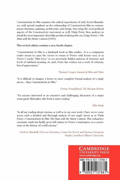 Constructivism in Film examines the radical experiments of early Soviet filmmakers, with special emphasis on the relationship of Constructivist film to contemporary literature, painting, architecture and design. Surveying the socio-political aspects of the Constructivist movement as well, Vlada Petri¿ then analyzes in detail the most important silent film produced during this era, Dziga Vertov's The Man with the Movie Camera (1929). This updated edition contains a new chapter about the descriptive score of the film.