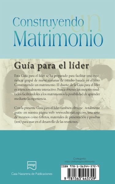 Esta Guía para el líder se ha preparado para facilitar una experiencia grupal de nueve semanas de estudio basada en el libro Construyendo un matrimonio. El diseño de la Guía para el líder es intencionalmente interactivo. Busca obtener los mejores resultados facilitándoles a los matrimonios la posibilidad de aprender mediante la experiencia. Con la presente Guía para el líder también obtiene -totalmente gratis- en nuestra página web: www.editorialcnp.com, una serie de recursos como folletos, materiales de presentación y pruebas (test) para usar en el desarrollo de las reuniones.56 pages.