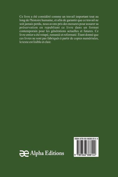Consuelo, Tome 3 (1861)"", constitue un phare dans le monde du livre, comblant le fossé entre le passé et le présent. Autrefois considéré parmi les livres anciens, cet ouvrage classique, comme tant de livres anciens et oubliés, a façonné notre compréhension de la culture et de l'histoire. exemple remarquable de livres d'histoire qui ont influencé des générations, et maintenant, grâce au dévouement d'Alpha Editions, votre éditeur de livres de confiance, il renaît dans un format frais et élégant. Nous avons soigneusement retapé, remanié et amélioré ce livre pour qu'il soit bien plus qu'un simple titre à lire. Vous pouvez désormais profiter de pages claires et faciles à lire, sans numérisation floue ni texte décoloré. En choisissant cette édition, vous investissez dans plus qu'un livre : vous sauvegardez un héritage. Votre soutien maintient en vie un morceau remarquable du patrimoine humain, garantissant que ses leçons et ses inspirations continuent de résonner dans le futur.