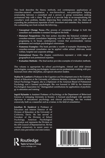 This book describes the theory, methods, and contemporary applications of consultee-centered consultation, a non-hierarchical, non-prescriptive helping relationship between a consultant and a person or group (consultee) seeking professional help with a client. The goal is to provide help in re-conceptualizing the consultee's work problem thereby 1) improving their relationship with the client and 2) expanding the professional repertoire of both consultant and consultee. Key features of this outstanding new book include the following: *Conceptual Change Focus--The process of conceptual change in both the consultant and consultee is stressed throughout the book. *Historical Perspectives--The first section describes the historical evolution of consultee-centered consultation beginning with the work of Gerald Caplan and progressing to its broad, contemporary version that accommodates various professions and multiple psychological orientations. *Numerous Examples--The book provides a wealth of examples illustrating how consultee-centered consultation can be applied within school, child-care, social welfare, hospital and corporate settings. *International Focus--The chapter contributors represent a wide range of geographical and professional expertise. *Evaluation Methods--The final section provides examples of evaluation methods. This volume is appropriate for school, counseling, and clinical and child clinical psychologists; human service professionals working with professionals from other disciplines; and special education leaders.
