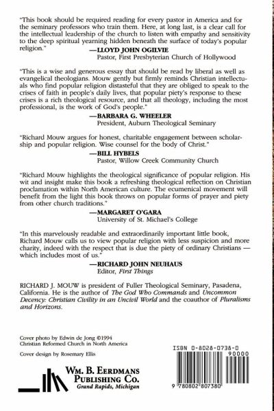 This is a print on demand book and is therefore non- returnable. In this careful assessment of contemporary religious trends, Mouw remains committed to theological orthodoxy while also asserting that the Christian intellectual community should pay careful and sympathetic attention to popular religious culture. Probing the thought of some theological giants of the past — John Henry Newman, Abraham Kuyper, and others — Mouw advocates a "hermeneutic of charity" toward popular religion and says that Christian scholars, besides teaching the "little people" of the church, must also learn from the "practical theological wisdom" of laypeople.