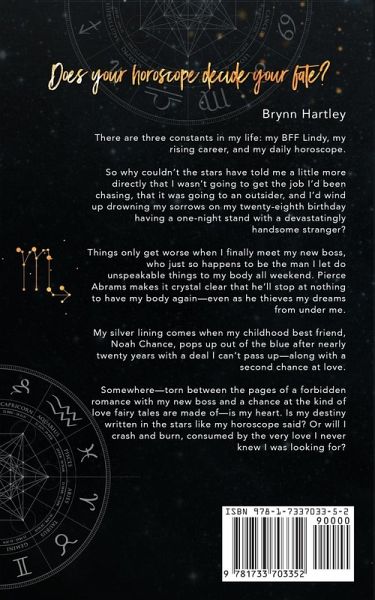 Brynn Hartley There are three constants in my life: my BFF Lindy, my rising career, and my daily horoscope. So why couldn't the stars have told me a little more directly that I wasn't going to get the job I'd been chasing, that it was going to an outsider, and I'd wind up drowning my sorrows on my twenty-eighth birthday having an unexpected encounter with a devastatingly handsome stranger? Things only get worse when I finally meet my new boss, who just so happens to be the man I spent my weekend with doing more than just blowing out birthday candles. Pierce Abrams makes it crystal clear that he'll stop at nothing to continue our new relationship-even as he thieves my dreams from under me. My silver lining comes when my childhood best friend, Noah Chance, pops up out of the blue after nearly twenty years with a deal I can't pass up-along with a second chance at love. Somewhere-torn between the pages of an unexpected romance with my new boss and a chance at the kind of love fairy tales are made of-is my heart. Is my destiny written in the stars like my horoscope said? Or will I crash and burn, consumed by the very love I never knew I was looking for?