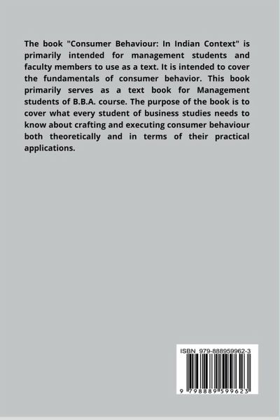 The book "Consumer Behaviour: In Indian Context" is primarily intended for management students and faculty members to use as a text. It is intended to cover the fundamentals of consumer behavior. This book primarily serves as a textbook for Management students of B.B.A. course. The purpose of the book is to cover what every student of business studies needs to know about crafting and executing consumer behaviour both theoretically and in terms of their practical applications.