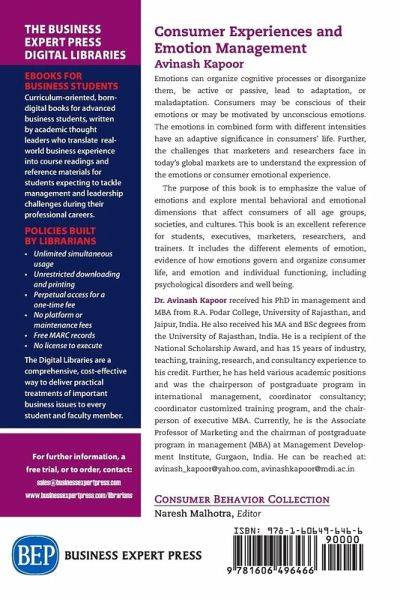 The purpose of emotion management is to build brand and create a sustainable competitive advantage. Emotions can organize cognitive processes or disorganize them, be active or passive, lead to adaptation, or be maladaptive. Consumers may be conscious of their emotions or may be motivated by unconscious emotions. The primary emotions like joy, fear and anger individually or in combined form with different intensities have an adaptive significance in a consumers life. Therefore the purpose of this book is to emphasizes the value of emotions and explore mental behavioral and emotional dimensions that affect consumers of all age groups, societies and cultures.