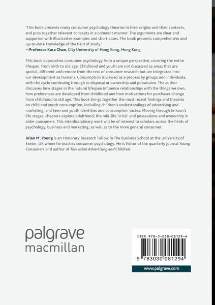 This book approaches consumer psychology from a unique perspective - it covers the entire lifespan, from birth to old age. Childhood and youth are not discussed as areas special, different and remote from the rest of consumer research but are integrated into our development as humans. Consumption is viewed as a process by groups and individuals with the cycle continuing through to disposal or ownership and possession. The author discusses how people's natural lifespan influences their relationship to the things they own, how preferences are developed from childhood and how motivations for purchases change throughout their lives from childhood to old age. This book brings together the most recent findings and theories on child and youth consumption, including children's understanding of advertising and marketing, teen and youth identities and their consumption tastes. Moving through Erikson's life stages chapters continue on to adulthood, the mid-life 'crisis' and possessions and ownership in older consumers. This is a deeply interdisciplinary work that will be of interest to scholars across the fields of psychology, business and marketing, as well as to the more general consumer.