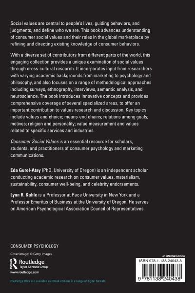 Social values are central to people's lives, guiding behaviors, and judgments, and defining who we are. This book advances understanding of consumer social values and their roles in the global marketplace by refining and directing existing knowledge of consumer behaviors. With a diverse set of contributors from different parts of the world, this engaging collection provides a unique examination of social values through cross-cultural research. It incorporates input from researchers with varying academic backgrounds from marketing to psychology and philosophy, and also focuses on a range of methodological approaches including surveys, ethnography, interviews, semantic analysis, and neuroscience. The book introduces innovative concepts and provides comprehensive coverage of several specialized areas, to offer an important contribution to values research and discussion. Key topics include values and choice; means-end chains; relations among goals; motives; religion and personality; value measurement and values related to specific services and industries. Consumer Social Values is an essential resource for scholars, students, and practitioners of consumer psychology and marketing communications.