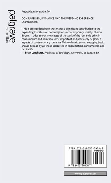 'This is an excellent book that makes a significant contribution to the expanding literature on consumption in contemporary society. Sharon Boden...adds to our knowledge of the work of the romantic ethic in consumerism and points to some important and previously neglected aspects of contemporary romance. This well written and engaging book should be read by all those interested in consumption, consumerism and family life.' - Brian Longhurst, Professor of Sociology, University of Salford, UK