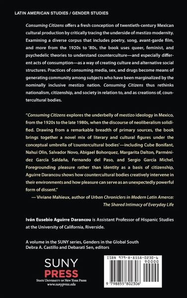 Explores twentieth-century Mexican counterculture through the lens of pleasure, body autonomy, and music and film undergrounds. Consuming Citizens offers a fresh conception of twentieth-century Mexican cultural production by critically tracing the underside of mestizo modernity. Examining a diverse corpus that includes poetry, song, avant-garde film, and more from the 1920s to '80s, the volume uses queer, feminist, and psychedelic theories to understand counterculture-and especially different acts of consumption-as a way of creating culture and alternative social structures. Practices of consuming media, sex, and drugs become means of generating community among subjects who have been marginalized by the nominally inclusive mestizo nation. Consuming Citizens thus rethinks nationalism, citizenship, and society in relation to, and as creations of, countercultural bodies.