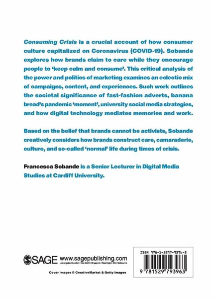 Consuming Crisis is a crucial account of how consumer culture capitalized on Coronavirus (COVID-19). Sobande explores how brands claim to care while they encourage people to keep calm and consume . This critical analysis of the power and politics of marketing examines an eclectic mix of campaigns, content, and experiences. Such work outlines the societal significance of fast-fashion adverts, banana bread s pandemic moment , university social media strategies, and how digital technology mediates memories and work. Based on the belief that brands cannot be activists, Sobande creatively considers how brands construct care, camaraderie, culture, and so-called normal life during times of crisis.