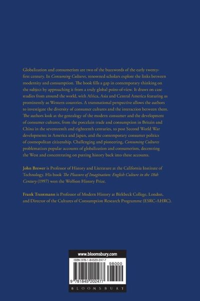 Globalization and consumerism are two of the buzzwords of the early twenty-first century. In Consuming Cultures, renowned scholars explore the links between modernity and consumption. The book fills a gap in contemporary thinking on the subject by approaching it from a truly global point-of-view. It draws on case studies from around the world, with Africa, Asia and Central America featuring as prominently as Western countries. A transnational perspective allows the authors to investigate the diversity of consumer cultures and the interaction between them. The authors look at the genealogy of the modern consumer and the development of consumer cultures, from the porcelain trade and consumption in Britain and China in the seventeenth and eighteenth centuries, to post Second World War developments in America and Japan, and the contemporary consumer politics of cosmopolitan citizenship. Challenging and pioneering, Consuming Cultures problematizes popular accounts of globalization and consumerism, decentring the West and concentrating on putting history back into these accounts.