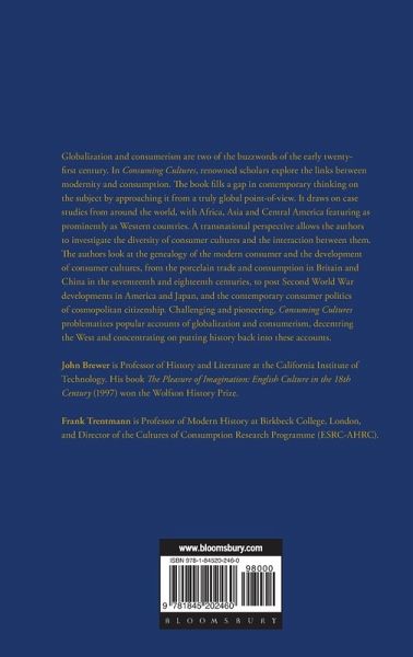 Globalization and consumerism are two of the buzzwords of the early twenty-first century. In Consuming Cultures, renowned scholars explore the links between modernity and consumption. The book fills a gap in contemporary thinking on the subject by approaching it from a truly global point-of-view. It draws on case studies from around the world, with Africa, Asia and Central America featuring as prominently as Western countries. A transnational perspective allows the authors to investigate the diversity of consumer cultures and the interaction between them. The authors look at the genealogy of the modern consumer and the development of consumer cultures, from the porcelain trade and consumption in Britain and China in the seventeenth and eighteenth centuries, to post Second World War developments in America and Japan, and the contemporary consumer politics of cosmopolitan citizenship. Challenging and pioneering, Consuming Cultures problematizes popular accounts of globalization and consumerism, decentring the West and concentrating on putting history back into these accounts.