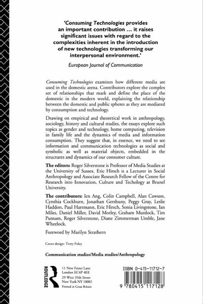 Consuming Technologies opens for analysis some crucial but rarely examined areas of social, cultural and economic life. At its core is a concern with the complex set of relationships that mark and define the place of the domestic in the modern world, and an explanation of the relationship between the domestic and public spheres as they are mediated by consumption and technology. Debate over the commodification and privatisation of everyday life has been preoccupied with the impact of technological change on established social structures and cultural values. Yet much of the discussion has lacked any substantive empirical work on the understanding of modern industrial society: on the nature of consumption, and the contradictory significance of the domestic sphere. The contributors address these questions with a series of essays suggesting that in essence, information and communication technologies require us to see them as social and symbolic as well as material objects, crucially embedded in the structures and dynamics of our consumer culture.