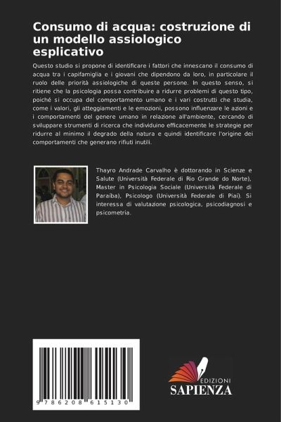 Questo studio si propone di identificare i fattori che innescano il consumo di acqua tra i capifamiglia e i giovani che dipendono da loro, in particolare il ruolo delle priorità assiologiche di queste persone. In questo senso, si ritiene che la psicologia possa contribuire a ridurre problemi di questo tipo, poiché si occupa del comportamento umano e i vari costrutti che studia, come i valori, gli atteggiamenti e le emozioni, possono influenzare le azioni e i comportamenti del genere umano in relazione all'ambiente, cercando di sviluppare strumenti di ricerca che individuino efficacemente le strategie per ridurre al minimo il degrado della natura e quindi identificare l'origine dei comportamenti che generano rifiuti inutili.
