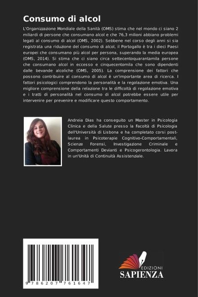 L'Organizzazione Mondiale della Sanità (OMS) stima che nel mondo ci siano 2 miliardi di persone che consumano alcol e che 76,3 milioni abbiano problemi legati al consumo di alcol (OMS, 2002). Sebbene nel corso degli anni si sia registrata una riduzione del consumo di alcol, il Portogallo è tra i dieci Paesi europei che consumano più alcol per persona, superando la media europea (OMS, 2014). Si stima che ci siano circa settecentoquarantamila persone che consumano alcol in eccesso e cinquecentomila che sono dipendenti dalle bevande alcoliche (OMS, 2005). La comprensione dei fattori che possono contribuire al consumo di alcol è un'importante area di ricerca. I fattori psicologici comprendono la personalità e la regolazione emotiva. Una migliore comprensione della relazione tra le difficoltà di regolazione emotiva e i tratti di personalità nel consumo di alcol potrebbe essere utile per intervenire per prevenire e modificare questo comportamento.