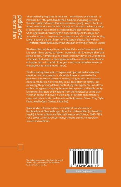 'The scholarship displayed in this book - both literary and medical - is immense. Over the past decade there has been increasing interest in the relationship between literature and disease [and] Lawlor's book is a superb contribution to this field of study, as it extends the literary study of consumption back into the seventeenth and eighteenth centuries, while significantly broadening this discussion beyond the major consumptive writers... to produce a veritable canon of consumptive writing. Lawlor's book is the best history of this literary disease that we have' - Professor Alan Bewell, Department of English, University of Toronto, Canada
