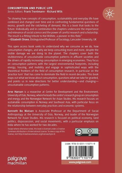This open access book seeks to understand why we consume as we do, how consumption changes, and why we keep consuming more and more, despite the visible damage we are doing to the planet. The chapters cover both the stubbornness of unsustainable consumption patterns in affluent societies and the drivers of rapidly increasing consumption in emerging economies. They focus on consumption patterns with the largest environmental footprints, including energy, housing, and mobility and engage in sophisticated ways with the theoretical frontiers of the field of consumption research, in particular on the 'practice turn' that has come to dominate the field in recent decades. This book maps out what we know about consumption, questions what we take for granted, and points us in new directions for better understanding-and changing-unsustainable consumption patterns.