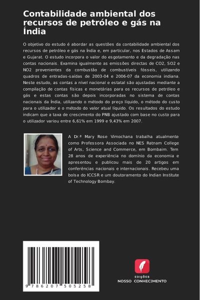 O objetivo do estudo é abordar as questões da contabilidade ambiental dos recursos de petróleo e gás na Índia e, em particular, nos Estados de Assam e Gujarat. O estudo incorpora o valor do esgotamento e da degradação nas contas nacionais. Examina igualmente as emissões directas de CO2, SO2 e NO2 provenientes da combustão de combustíveis fósseis, utilizando quadros de entradas-saídas de 2003-04 e 2006-07 da economia indiana. Neste estudo, as contas a nível nacional e estatal são ajustadas mediante a compilação de contas físicas e monetárias para os recursos de petróleo e gás e estas contas são depois incorporadas no sistema de contas nacionais da Índia, utilizando o método do preço líquido, o método do custo para o utilizador e o método do valor atual líquido. Os resultados do estudo indicam que a taxa de crescimento do PNB ajustado com base no custo para o utilizador variou entre 6,61% em 1999 e 9,43% em 2007.