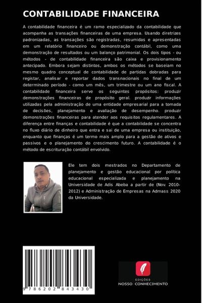 A contabilidade financeira é um ramo especializado da contabilidade que acompanha as transações financeiras de uma empresa. Usando diretrizes padronizadas, as transações são registradas, resumidas e apresentadas em um relatório financeiro ou demonstração contábil, como uma demonstração de resultados ou um balanço patrimonial. Os dois tipos - ou métodos - de contabilidade financeira são caixa e provisionamento antecipado. Embora sejam distintos, ambos os métodos se baseiam no mesmo quadro conceptual de contabilidade de partidas dobradas para registar, analisar e reportar dados transnacionais no final de um determinado período - como um mês, um trimestre ou um ano fiscal. A contabilidade financeira serve os seguintes propósitos: produzir demonstrações financeiras de propósito geral. produzir informações utilizadas pela administração de uma entidade empresarial para a tomada de decisões, planejamento e avaliação de desempenho. produzir demonstrações financeiras para atender aos requisitos regulamentares. A diferença entre finanças e contabilidade é que a contabilidade se concentra no fluxo diário de dinheiro que entra e sai de uma empresa ou instituição, enquanto que finanças é um termo mais amplo para a gestão de ativos e passivos e o planejamento do crescimento futuro. A contabilidade é o método de escrituração contábil envolvido.