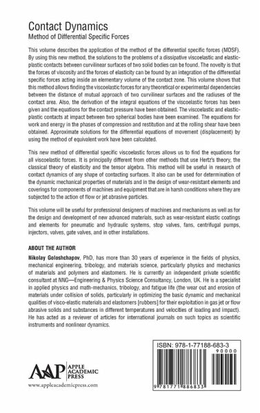 1. Problems in Contact Dynamics between Solids. 2. Method of the Differential Specific Forces (MDSF). 3. Dynamics of Viscoelastic Contacts, Tribocyclicity, and Viscoelastic Lubrication. 4. Method of the Differential Specific Forces in Dynamics of Elastoplastic Contacts. 5. Definition of the Time of Fatigue Life and Dynamic Mechanical Properties of Materials of the Contacting Surfaces.