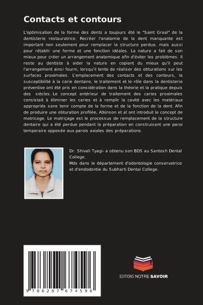 L'optimisation de la forme des dents a toujours été le "Saint Graal" de la dentisterie restauratrice. Recréer l'anatomie de la dent manquante est important non seulement pour remplacer la structure perdue, mais aussi pour rétablir une forme et une fonction idéales. La nature a fait de son mieux pour créer un arrangement anatomique afin d'éviter les problèmes. Il reste au dentiste à aider la nature en copiant du mieux qu'il peut l'arrangement ainsi fourni, lorsqu'il tente de réaliser des obturations sur les surfaces proximales. L'emplacement des contacts et des contours, la susceptibilité à la carie dentaire, le traitement et le rôle dans la dentisterie préventive ont été pris en considération dans la théorie et la pratique depuis des siècles. Le concept antérieur de traitement des caries proximales consistait à éliminer les caries et à remplir la cavité avec les matériaux appropriés sans tenir compte de la forme et de la fonction de la dent. Afin de produire une obturation profilée, Atkinson et al ont introduit le concept de matricage. Le matriçage est le processus de remplacement de la structure dentaire qui a été perdue pendant la préparation en construisant une paroi temporaire opposée aux parois axiales des préparations.