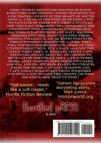 When world-renowned doctor Quentin Forsythe goes missing after traveling to a decimated colony in the heart of south Africa, a team of doctors must find a way to save one of their own when a sinister new virus is unleashed, transforming the colonists into something unspeakable. Doctors Judas Sturgis and Katy Madison embark into the colony to find their missing colleague, Dr. Quentin Forsythe, who supposedly has found a cure. They will witness the horrifying wake of this unstoppable virus. It's a race against the clock when the U.S. Military led by Capt. Nathaniel Logan arrives - on orders to quarantine the whole area. A fractured rebel army arrives with their own dark agenda, and Dr. Sturgis starts to unravel from the seams. Can Katy Madison and Capt. Logan hold everything together and find a way to save the colony, or risk becoming her next victims?