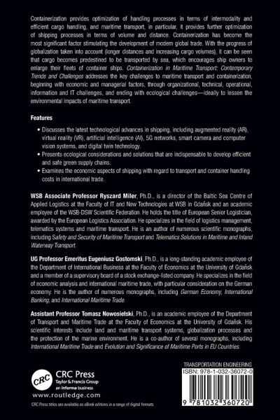 Containerization in Maritime Transport addresses challenges to maritime transport and containerization, beginning with economic and managerial factors, through organizational, technical, operational, information and IT challenges, and ending with ecological challenges- to lessen the environmental impacts of maritime transport.