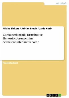 Projektarbeit aus dem Jahr 2018 im Fachbereich BWL - Beschaffung, Produktion, Logistik, Note: 1,7, Technische Universität Dortmund, Sprache: Deutsch, Abstract: Die vorliegende Arbeit befasst sich mit dem Seehafenhinterverkehr, der Containerlogistik und den neuen Anforderungen, die die Globalisierung an diesen Bereich stellt.Ein typisches Merkmal der allgegenwärtigen Globalisierung ist die Containerisierung im Güterverkehr. Die Erfindung, sowie die Einführung von standardisierten und stapelbaren Containern führten zu dem großen Einfluss der maritimen Logistik im internationalen Handel, da die Container nun als genormte Ladeeinheiten die Transportkosten deutlich reduzierten.Bis 2009, als Reedereien und Terminalbetreiber aufgrund der Finanzkrise einen drastischen Rückgang des Containervolumens verzeichnen mussten, war der weltweite jährliche Containerumschlag durch stetiges Wachstum geprägt. Inzwischen hat sich der maritime Sektor von dem Rückschlag erholt und die weltweit gezähltenContainerumschläge steigen weiter an. Der weitere Abbau von Handelshemmnissen könnte zu einer Intensivierung des internationalen Handels führen. Durch die eingeführten EU Strafzölle für Exporte in die Vereinigte Staaten ist die Verstärkung des internationalen Warenaustausches jedoch vorerst gehemmt.Der generell steigende Containerumschlag in den Seehäfen hat auch Auswirkungen auf das Festland. Heutzutage haben die Häfen zunehmend Probleme, Warenströme zwischen dem Seehafen und dem Hinterland effizient zu verwalten. Nach dem Entladen der Container aus dem Schiff ist es das Ziel, die Fracht so schnell und kostengünstig wie möglich zum Bestimmungsort zu transportieren. Staus an den Seehafenterminals, verursacht durch eine steigende Anzahl von Containern, verhindern jedoch die Erreichung dieses Ziels. Die zunehmenden Schiffskapazitäten können die Engpasssituation in den Seehäfen noch weiter verschärfen.Im Rahmen dieser Arbeit werden deshalb die Distributionskonzepte des Hinterlandverkehrs hinsichtlich ihrer Vor- und Nachteile analysiert. Diese Analyse soll nicht nur die einzelnen Konzepte auswerten, sondern auch die Kompatibilität der möglichen Transportmittel mit dem Hinterlandverkehr aufzeigen.Abschließend erhält der Leser noch einen Ausblick auf neue Konzepte beziehungsweise Lösungsansätze um bestehende und zukünftige Herausforderungen im Hinterlandverkehr zu bewältigen.