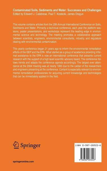 Environmental Fate.- Slow Desorption of Phenanthrene from Silica Particles: Influence of Pore Size, Pore Water, and Aging Time.- Heavy Metals.- Understanding the Causes of and the Permanent Solutions for Groundwater Arsenic Poisoning in Bangladesh.- Evaluation of Heavy Metal Availability in the Mining Areas of Bulgaria.- Average Particle Size Ratios and Chemical Speciation of Copper and Zinc in Road-Dust Samples.- Modeling.- Contaminant Fate and Transport in the Courtroom.- A New Method of Delineating Three-Dimensional Capture Zones with Models.- Comparing Air Measurements and Air Modeling at a Residential Site Overlying a TCE Groundwater Plume.- Development and Application of a Multimedia Model to Assess Fate and Transport of Organic Chemicals in a South Texas Lake.- MtBE and Oxygenates.- The MtBE Removal Effectiveness of Air Sparging, Tested on an Intermediate Scale Laboratory Apparatus.- Maine's Experiment with Gasoline Policy to Manage Mtbe in Groundwater.- Radionuclides.- Development of Radon Enrichment in Soil Gas over Quartz-Mica Schist in Virginia.- Influence of Home Size on the Risk from Soil-Gas and Waterborne Indoor Radon.- Regulatory.- How Interstate Collaboration Can Improve Site Cleanups: Triad and the ITRC.- Remediation.- Organoclay/Carbon Systems at Military Installations.- Remediation of Petroleum-Containing Soil and Groundwater at a Former Rail Yard Locomotive Fueling Area.- Phyto-Extraction of Field-Weathered DDE by Subspecies of Cucurbita and Exudation of Citric Acid from Roots.- Phytoremediation of Lead-Contaminated Soil in the Urban Residential Environment Using Seed Mustard.- CVOC Source Identification Through in situ Chemical Oxidation in Fractured Bedrock.- ISCO Technology Overview: Do You Really Understand the Chemistry?.- Brownfield SiteAssessment and Remediation.- Treatment of PCP-Contaminated Soil Using an Engineered ex situ Biopile Process on a Former Wood Treatment Superfund Site.- Risk Assessment and Remedial Approaches Towards Restoration and Management of Contaminated Rivers.- Exploring Innovative and Cost-Effective Solutions to Contaminated Sediments to Achieve Ecological Restoration of the Lower Neponset River.- Restoring an Urban River.- A Framework for River Cleanup Decision Making.- Neponset River Workshop.- Options for the Neponset.- Sorbent-Amended "Active" Sediment Caps for in-Place Management of PCB-Contaminated Sediments.- River Restoration: A View from Wisconsin.- Characterization of Contaminated Sediments for Remediation Projects in Hamilton Harbour.- Site Assessment.- Evaluation of Solvent Plume Discharge to a Wetland Stream Using an Innovative Passive Diffusion Sampling Methodology.- A Preliminary Environmental Site Investigation for a Bridge over the Mississippi River at Moline, Illinois.- Targeted Brownfields Assessment of a Former Power Plant Using the Triad Approach.- Case Study of TCE Attenuation from Groundwater to Indoor Air and the Effects of Ventilation on Entry Routes.