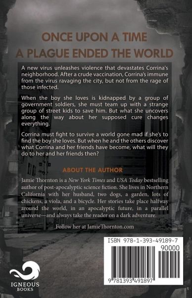 From New York Times and USA Today bestselling author Jamie Thornton. A thrilling science fiction series... ...once upon a time a plague ended the world. Will Corrina save the boy she loves? "Thrilling...keeps you reading and wanting more." "I couldn't put this down." "...left me hungry for the next book." A single drop of blood is all it takes to change you. Sometimes the blood fills you with rage, but sometimes it does...something else. When a new virus unleashes violence that devastates eighteen-year-old Corrina's neighborhood, all Corrina can think about is surviving. But when the boy she loves is kidnapped by a group of government soldiers, she must team up with a strange group of street kids to save him. Powerful enemies, bizarre memories, a government willing to do anything for control.... You'll love this terrifying sci-fi plague apocalypse, because the best ones have twists you never see coming. Get it now.