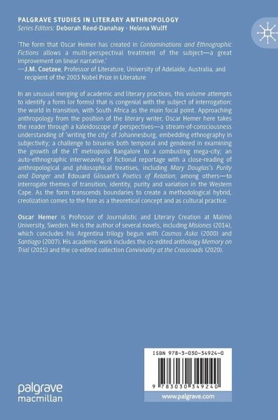 In an unusual merging of academic and literary practices, this volume attempts to identify a form (or forms) that is congenial with the subject of interrogation: the world in transition, with South Africa as the main focal point. Approaching anthropology from the position of the literary writer, Oscar Hemer here takes the reader through a kaleidoscope of perspectives-a stream-of-consciousness understanding of "writing the city" of Johannesburg, embedding ethnography in subjectivity; a challenge to binaries both temporal and gendered in examining the growth of the IT metropolis Bangalore to a combusting mega-city; an auto-ethnographic interweaving of fictional reportage with a close-reading of anthropological and philosophical treatises, including Mary Douglas's Purity and Danger and Edouard Glissant's Poetics of Relation, among others-to interrogate themes of transition, identity, purity and variation in the Western Cape. As the form transcends boundaries to create a methodological hybrid, creolization comes to the fore as a theoretical concept and as cultural practice.